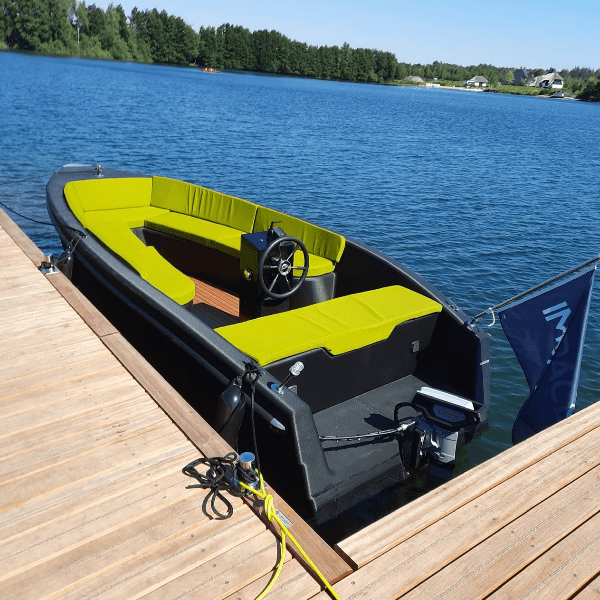 Atlantic 550 can be equipped with an electric outboard motor and battery pack.